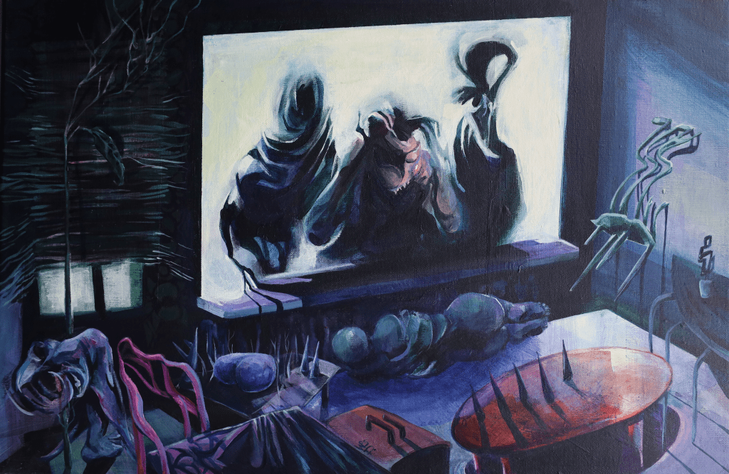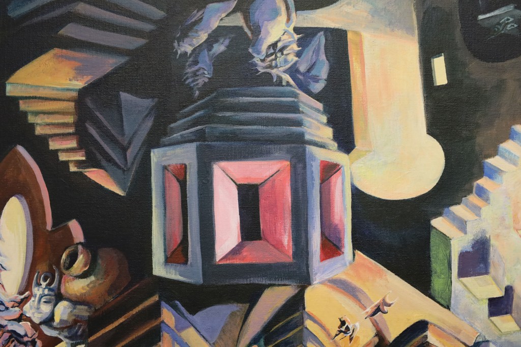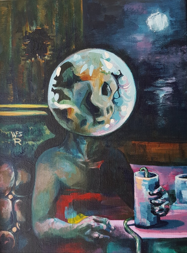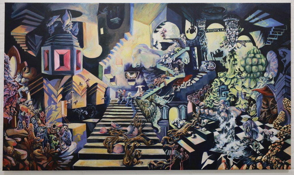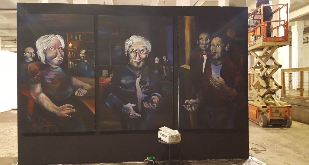 ‘Searching for the Edge of the World’The painting was created on a self-made canvas, commissioned by someone who wanted to give it as a present. The build-up of my graduation project started with the placement of the triptych ‘A Prima Vista’. After my nomination of the Klaas Dijkstra Academy prize.The Altermodern Project The Altermodern Project